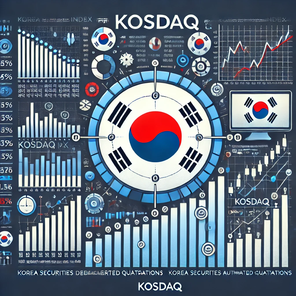 코스닥(KOSDAQ, Korea Securities Dealers Automated Quotations)은 한국거래소(KRX)에서 운영하는 **중소기업 및 성장 기업 중심의 주식 시장**입니다. 1996년 개설된 코스닥 시장은 미국의 나스닥(NASDAQ)을 모델로 만들어졌으며, 혁신적인 기술 기업과 벤처 기업들이 상장되어 있습니다.
